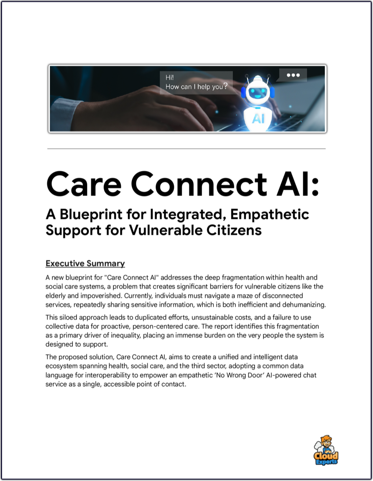 A blueprint for "Care Connect AI" (CC-AI) addresses the deep fragmentation within health and social care systems, a problem that creates significant barriers for vulnerable citizens like the elderly and impoverished.