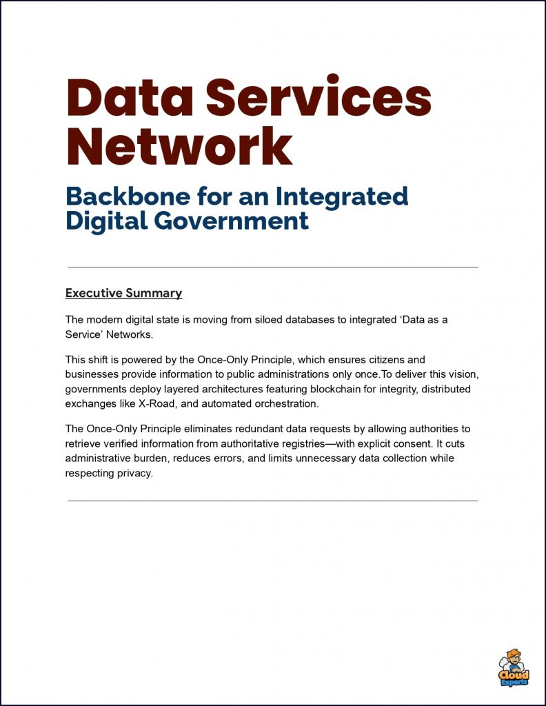 To fulfill this vision, governments are leveraging sophisticated technical architectures, including blockchain-based integrity layers, distributed data exchanges like the X-Road, and automated orchestration services.
